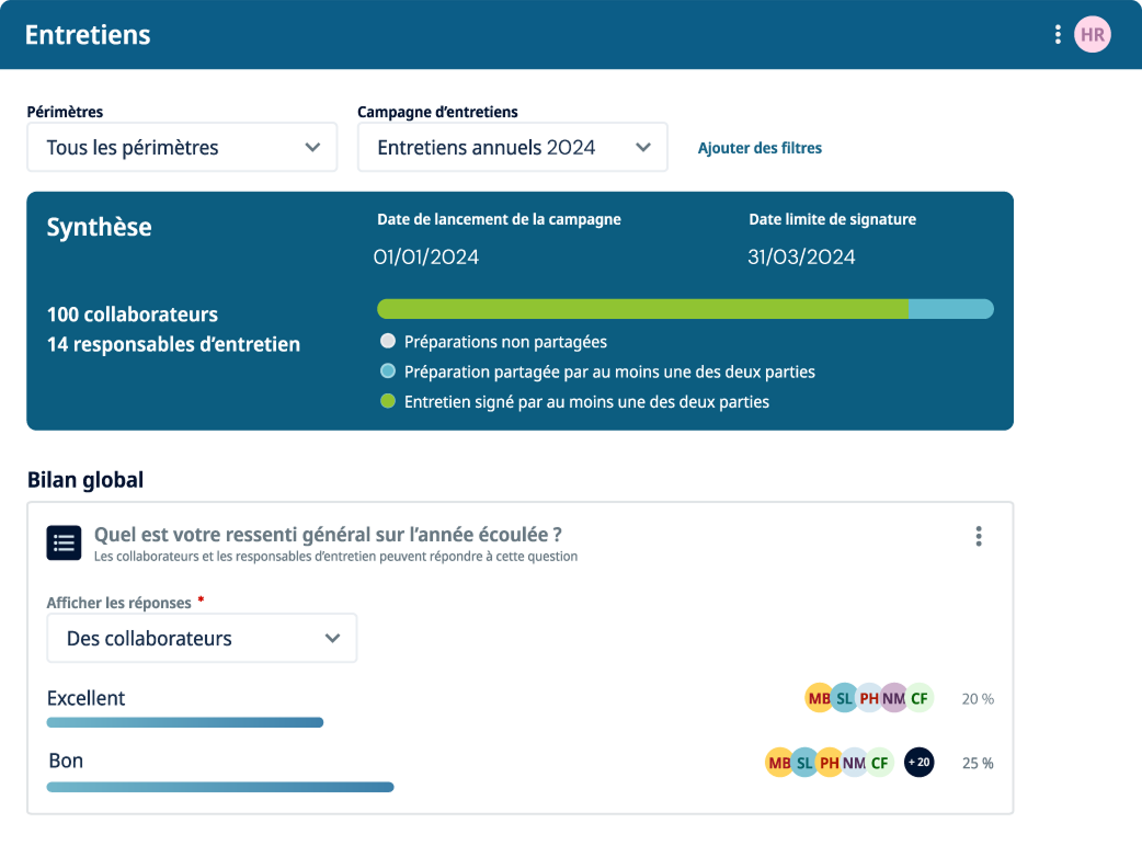 Les entretiens Skillup sont pensés pour être collaboratifs et itératifs entre les managers et leurs collaborateurs. De cette manière, chaque responsable peut être pleinement impliqué dans le processus d’évolution de chaque membre de son équipe. Cet investissement est nécessaire pour gérer au mieux les objectifs passés et futurs des collaborateurs et ainsi établir un management clair, basé sur un historique d’entretiens disponible dans sa base de données. En choisissant Skillup à travers PeopleSpheres, vous bénéficiez d’un accès à des logiciels de base de données sûrs et sur lesquels vous pourrez stocker vos informations liées à vos entretiens.