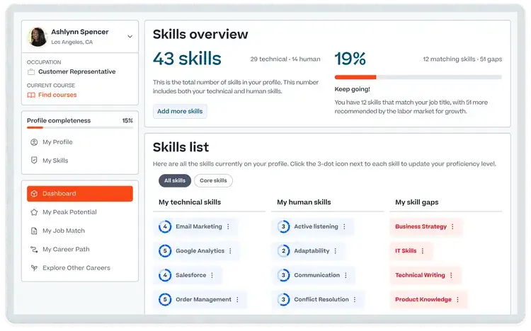 - Skill Passport: Connect employees, employers, educators, and governments around a unified skills-based labor economy. This collaborative space fosters strategic growth for all and promotes lifelong skill development and recognition.