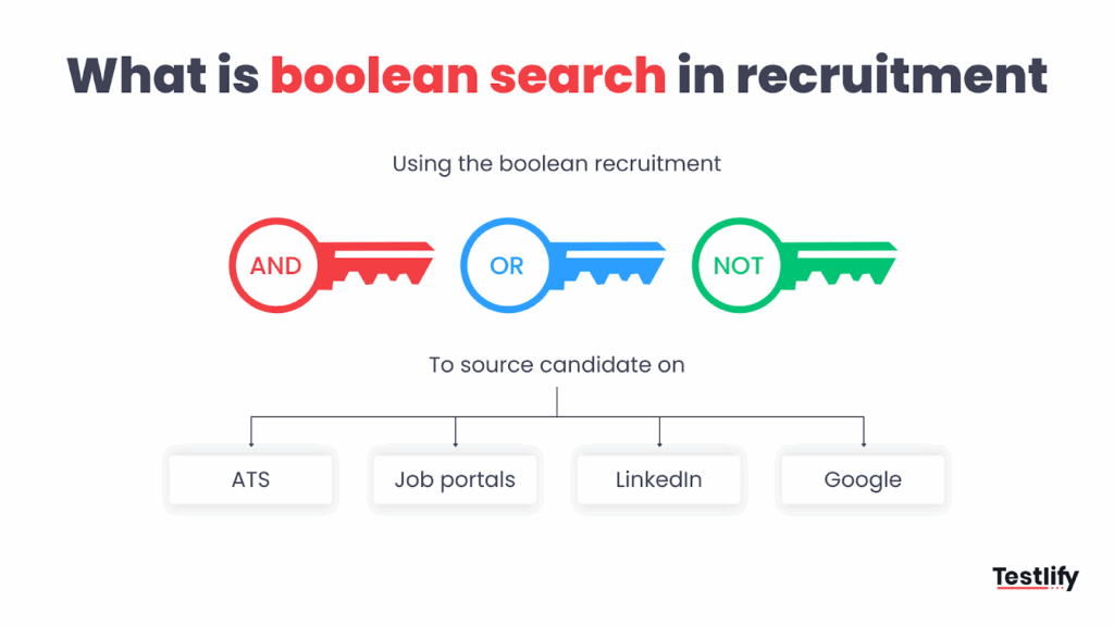 Although operator support may vary, some platforms also permit Boolean search in recruitment.